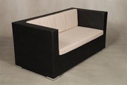 Двухместный диван из искусственного ротанга на алюминиевом каркасе. Комплектуется подушками (матрасами) на спинку и сидение. Толщина подушек - 8см. Подушки в съёмныйх чехлах на молнии, цвет чехлов - бежевый. Высота сидения дивана 30см Диван разборный.